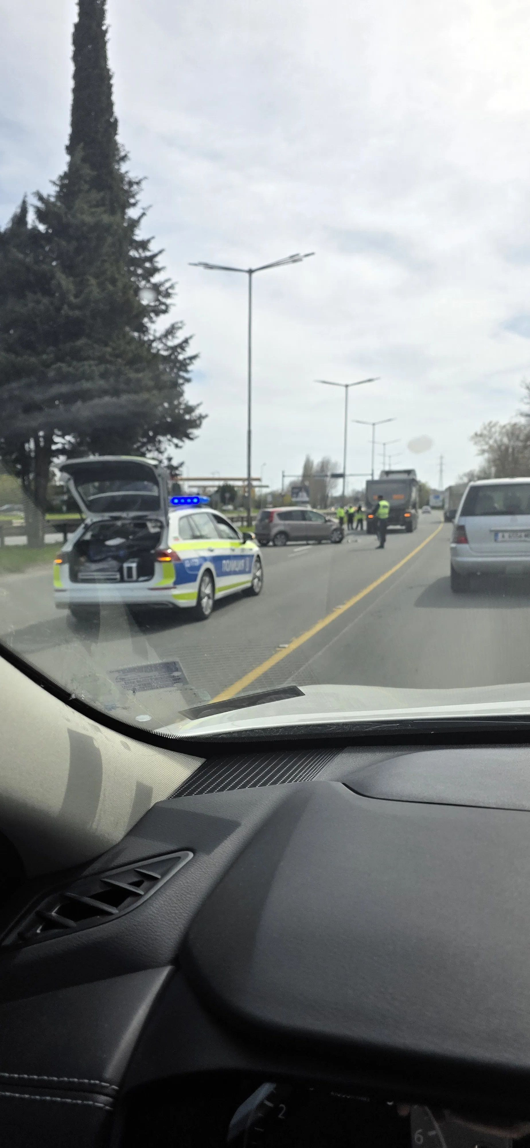 Реакція «Дорожньої поліції» була миттєвою. Кілька патрульних машин з увімкненими світловими сигналами заблокували ділянку та перенаправили рух лише в одну смугу в напрямку Созополя. Конуси посередині дороги окреслюють місце зіткнення, а поліцейські у яскравих жилетах подають знаки водіям зменшити швидкість та проїжджати обережно. В результаті на трасі швидко утворилася кілометрова колона, в якій автомобілі повзуть на першій передачі, а водії терпляче чекають, щоб об'їхати автомобіль, що потрапив у аварію, та зупинену вантажівку.